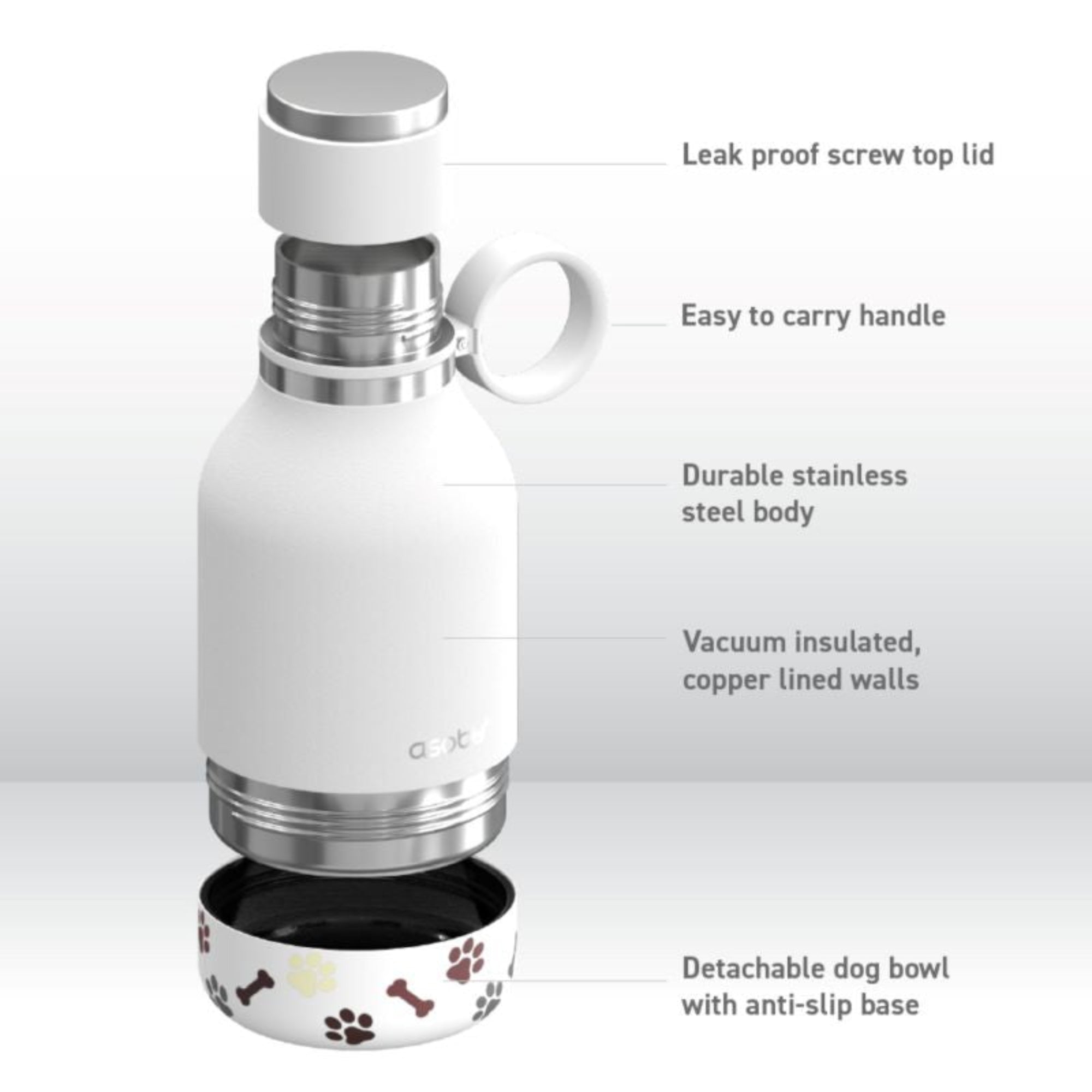 Zadbaj o nawodnienie swoje i swojego pupila – z białą butelką Asobu Stainless zawsze macie dostęp do świeżej wody, gdziekolwiek jesteście!