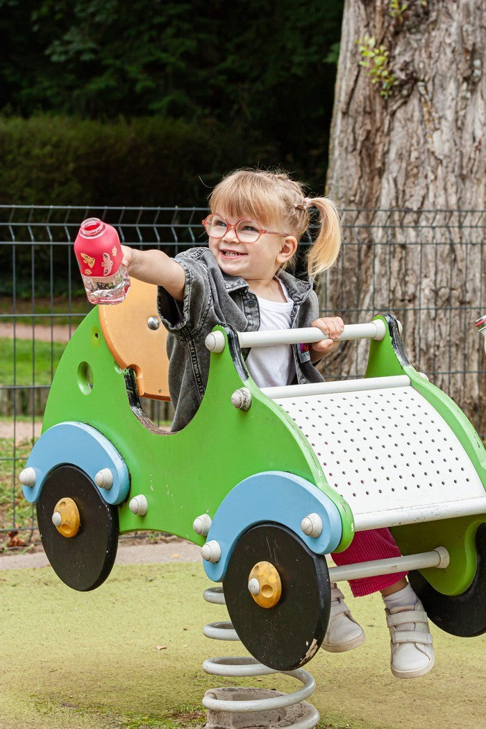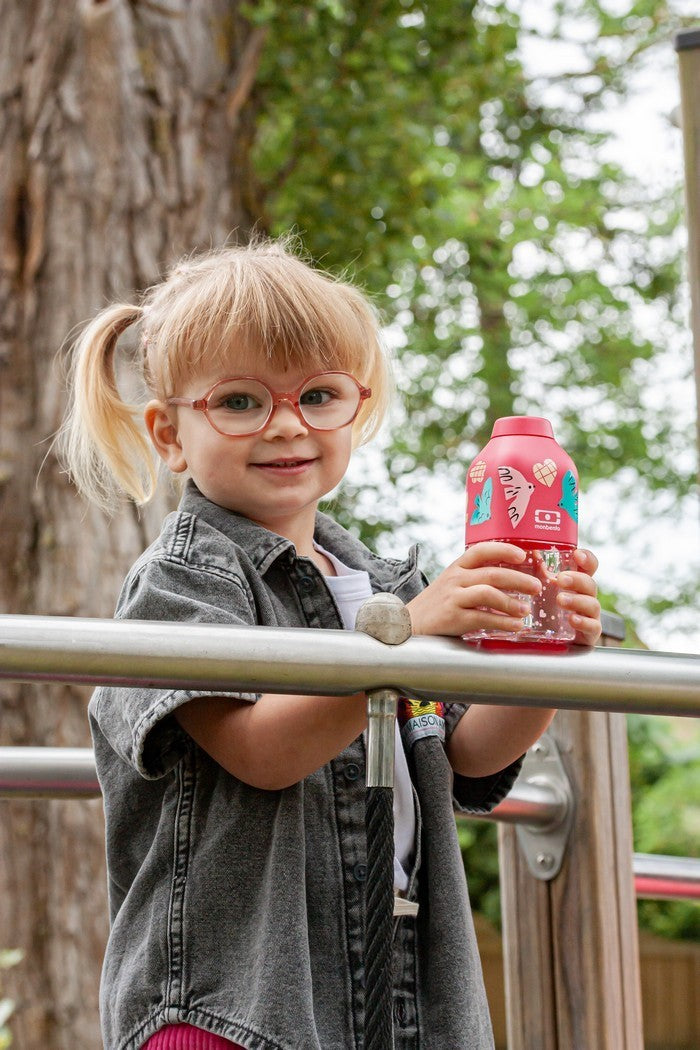 Smukły i poręczny – bidon świetnie leży w małej rączce i bez trudu mieści się w plecaku czy torbie na zajęcia dodatkowe.