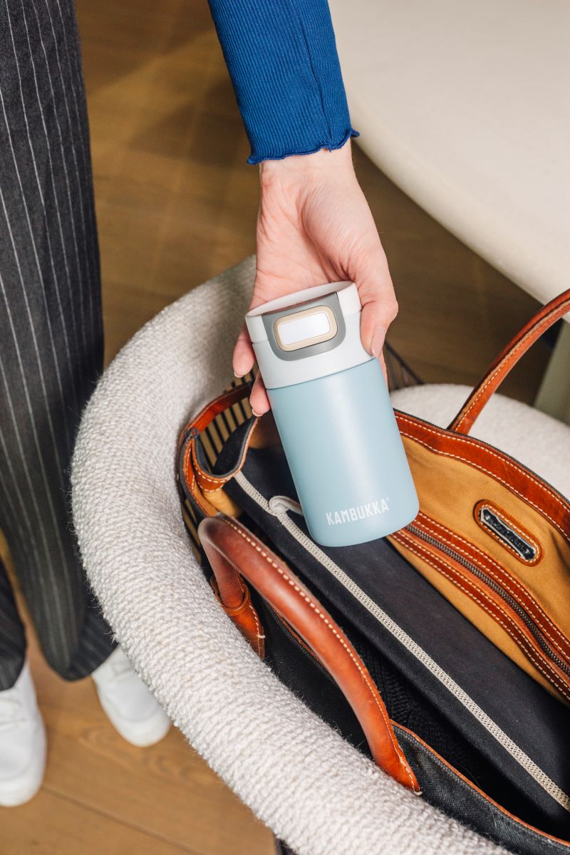 Kawa, która trzyma temperaturę, jak Ty trzymasz tempo dnia! Kambukka Etna Breezy Blue 300 ml to stalowy kubek termiczny, który dotrzyma Ci kroku – od porannej kawy po wieczorny trening.