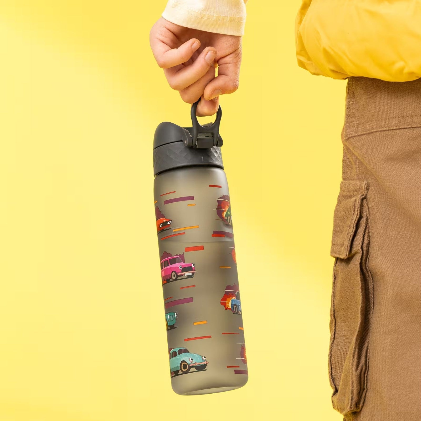 Zachęć swoje dziecko do picia wody – szary bidon ze sportowymi autami od Ion8 otworzy się jednym kliknięciem i sprawi, że zdrowe nawyki staną się czystą przyjemnością!