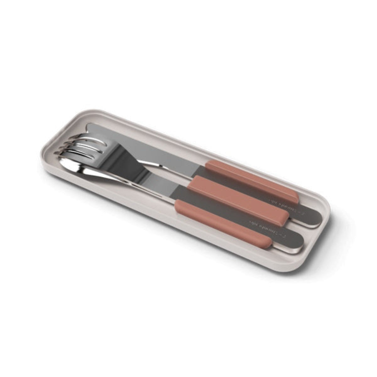 MONBENTO SLIM BOX stalowe sztućce w etui, Pink Moka