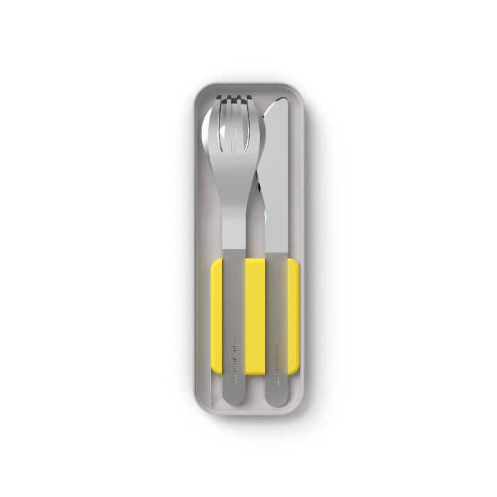 MONBENTO SLIM BOX stalowe sztućce w etui, Yellow