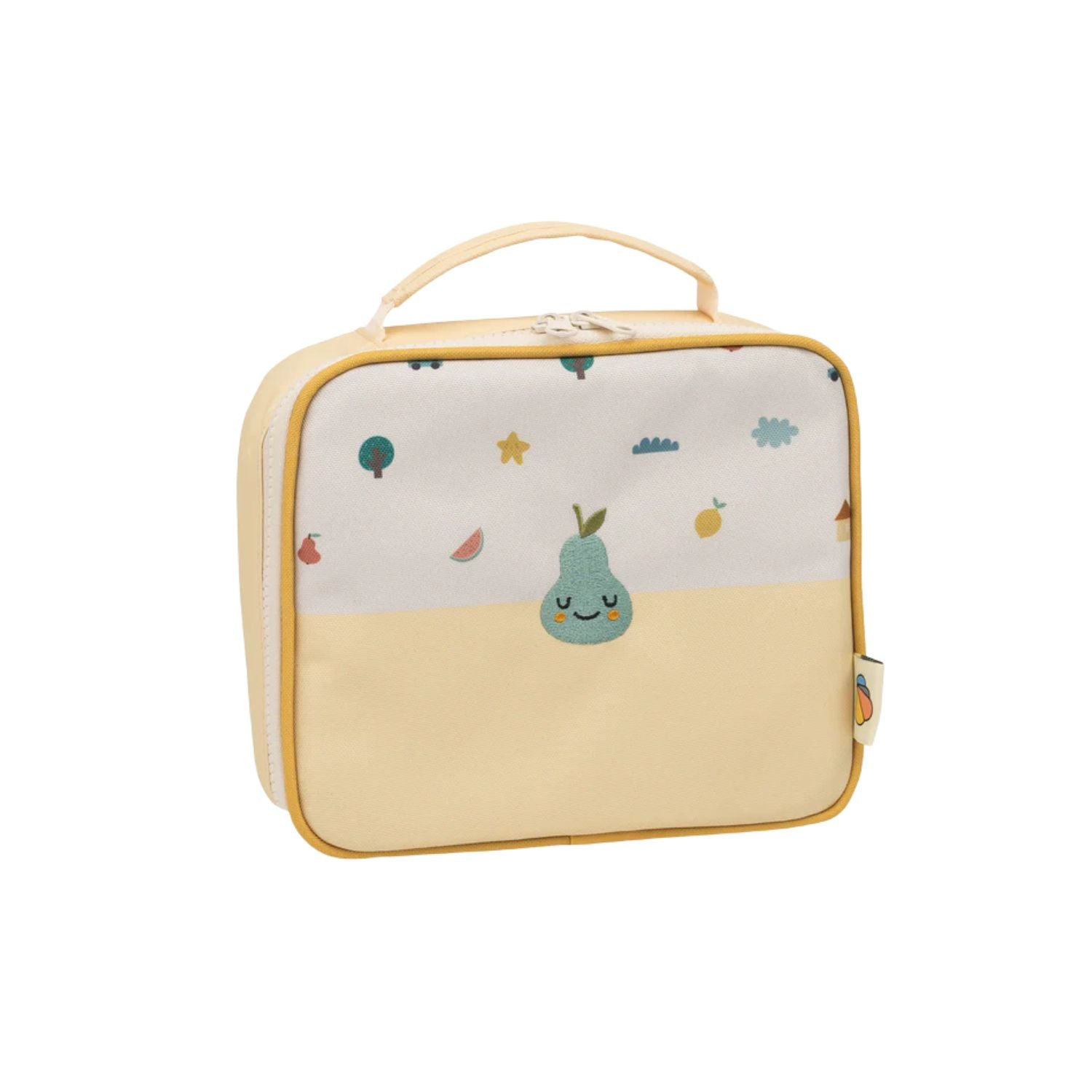 Radosny wzór z gruszką sprawia, że posiłki stają się przyjemniejsze dla dziecka.